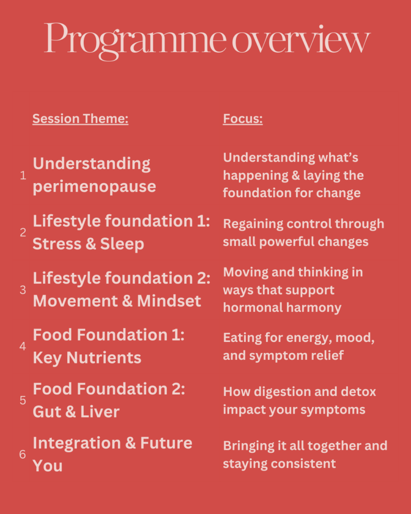 Nathalie explains: “Perimenopause can be an overwhelming time, but it doesn’t have to feel isolating. This programme is about creating a supportive space where women can share experiences, learn practical tools, and feel more balanced.”