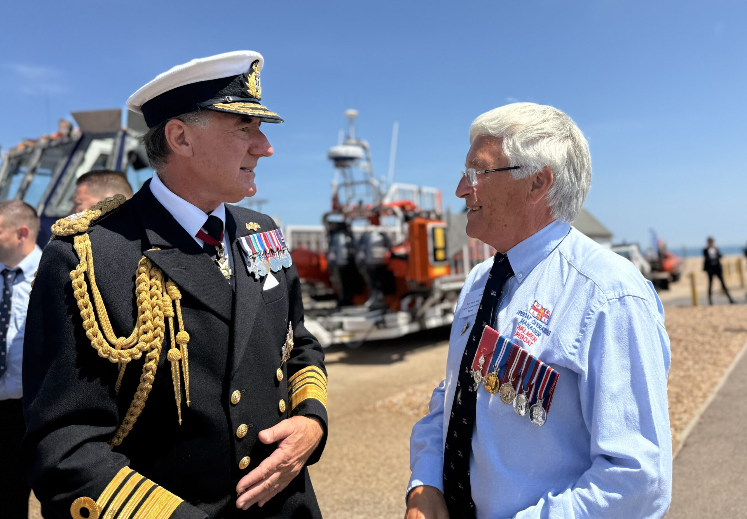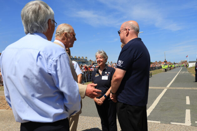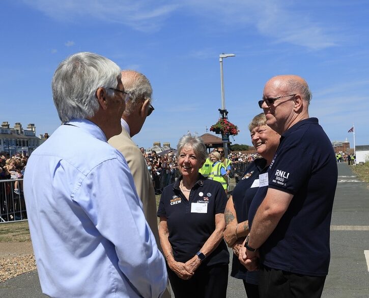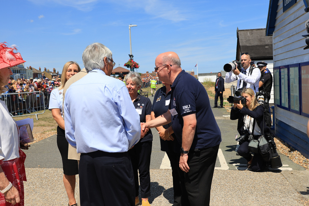 The King was welcomed by volunteer Lifeboat Operations Manager Denis Brophy, MBE. Denis has volunteered with the RNLI since 1967, and had the privilege of introducing His Majesty to other dedicated RNLI volunteers including crew from neighbouring lifeboat stations, Rye Harbour, Margate, Hastings and Ramsgate.