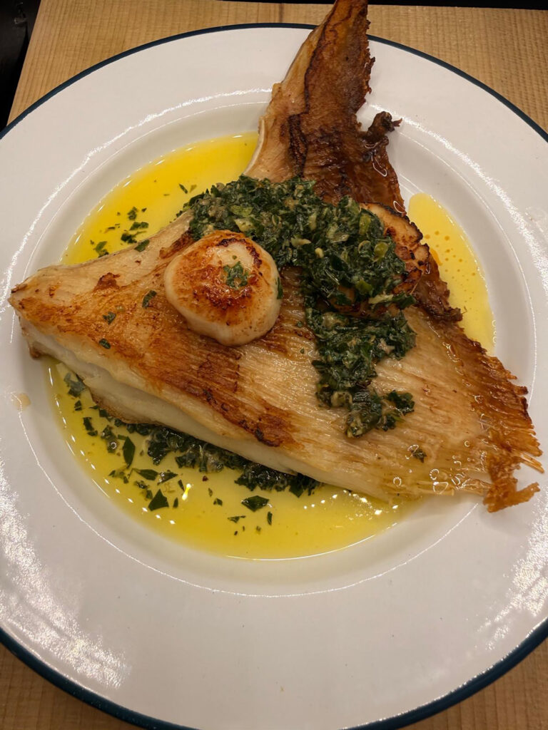 “On Sunday 1 February we did a cook-off and I had great feedback from the diners. My favourite dish was the skate wing dish: pan-seared skate wing with caramelised scallops finished with a bright herb-packed salsa verde.