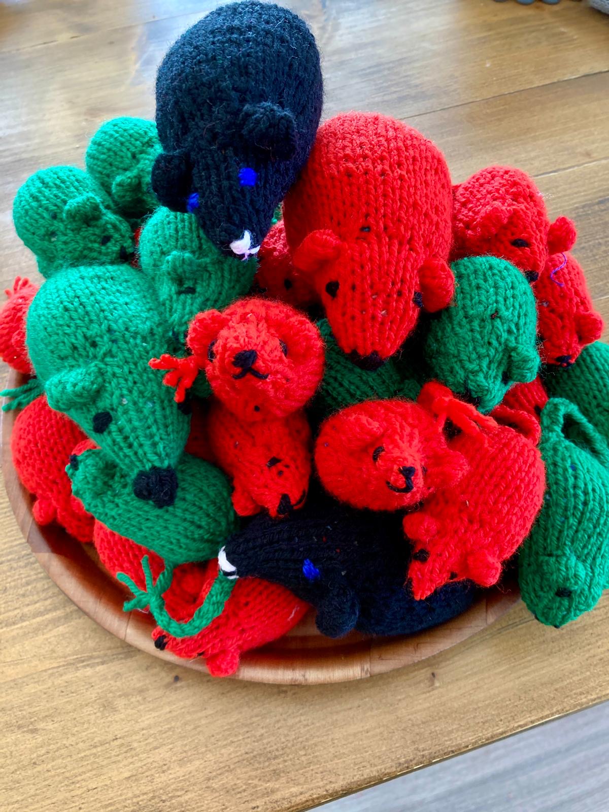 Erica is a Rye treasure. She is so kind and caring and it is no surprise that she was a private nanny for many years. She just loves to knit and enjoys the comradery of the weekly knitting group at the church. She has made mice of all colours and just recently she made green and red ones for Ryebellion drummers to wear on their hats – and even one dragon.