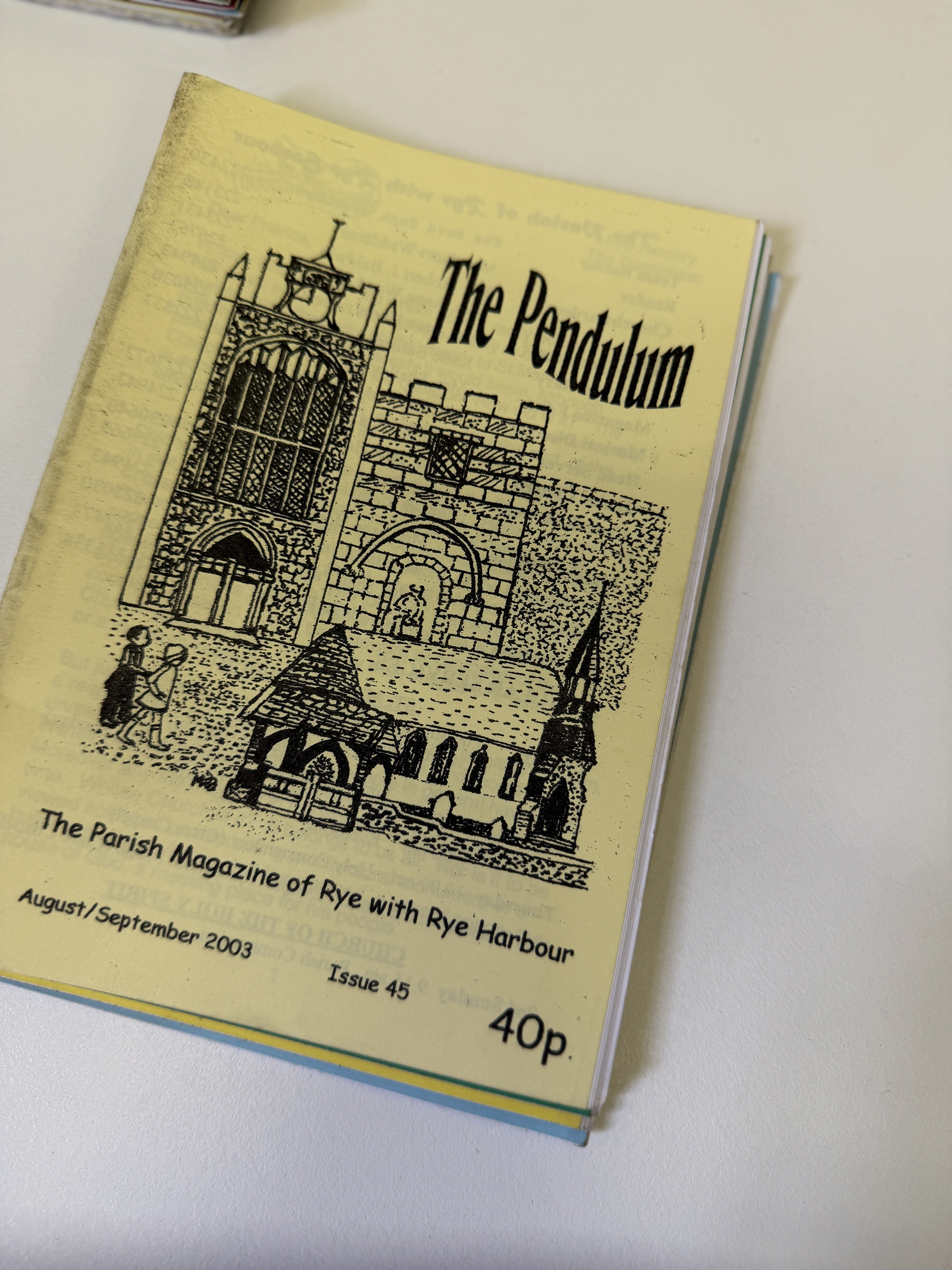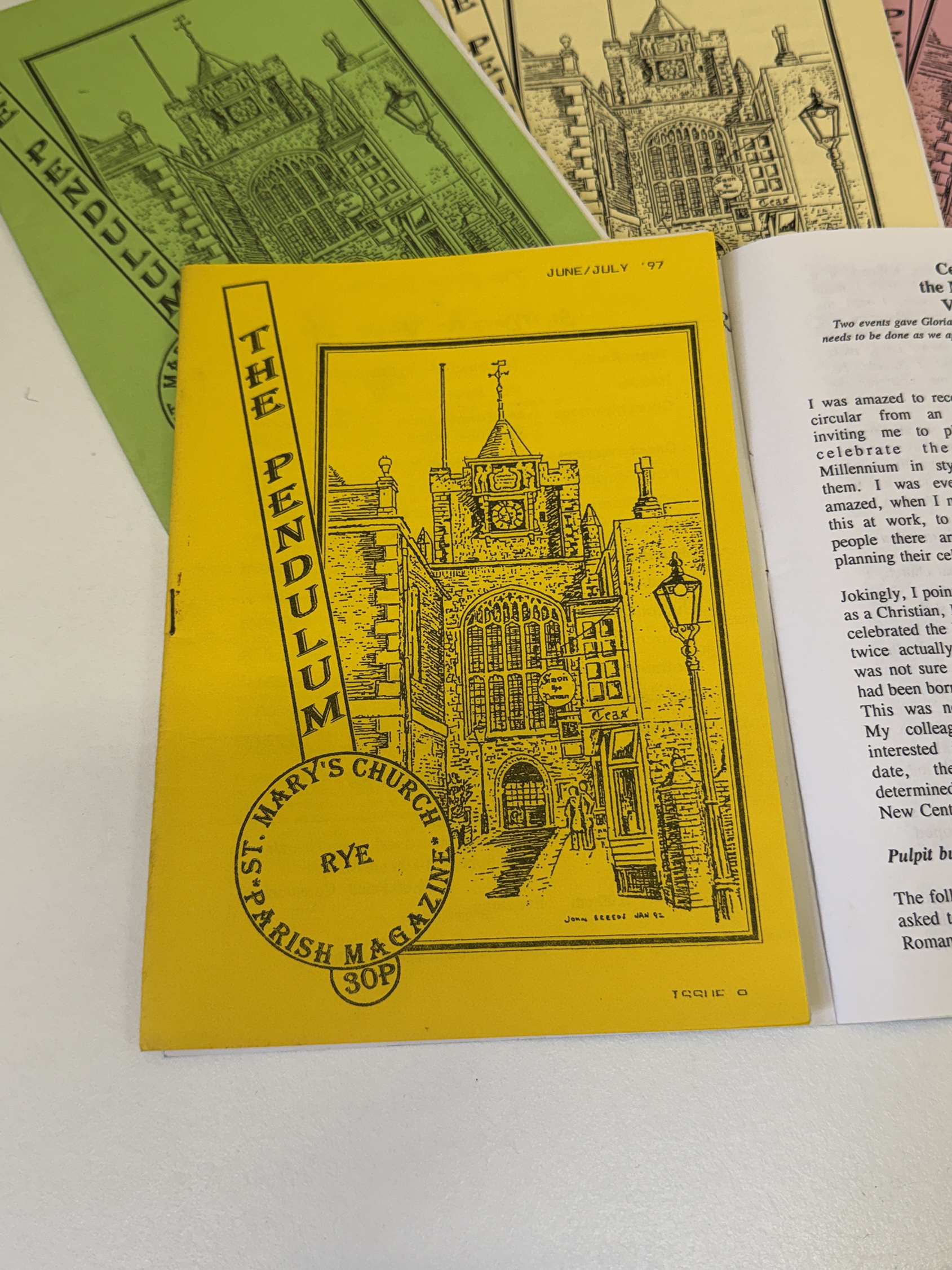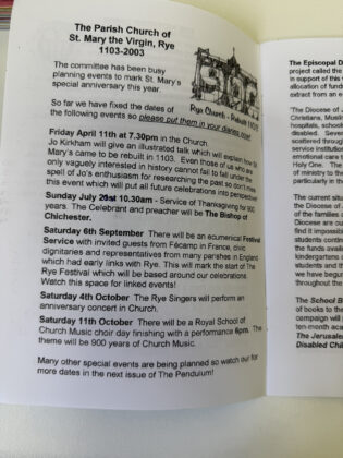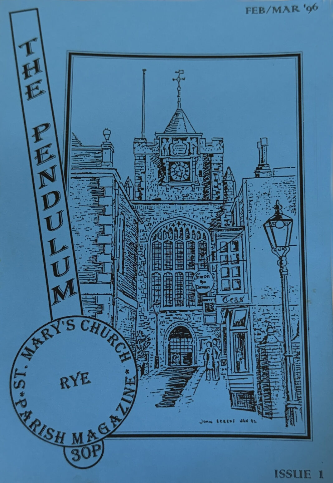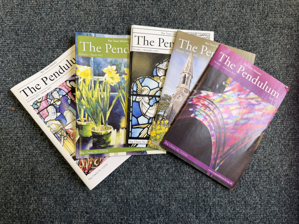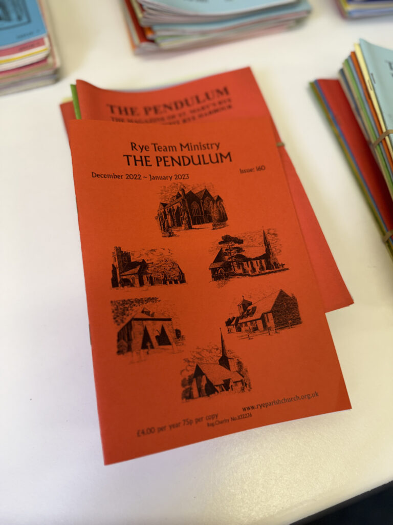 In 1994/5 a small group of PCC members felt strongly that it was about time that St Mary’s had a parish magazine so after a great deal of discussion a small editorial team was formed which consisted of myself as editor, Jane Horne (then Churchwarden who now lives in Romsey) and the late John and Maureen Sherwood. Our original idea was that this should be a Rye team magazine but the other parishes in the team were unwilling, for various reasons, to join in so, undeterred, we forged ahead with creating The Pendulum. The name was chosen as the pendulum is, along with the clock, our most famous and unique feature.