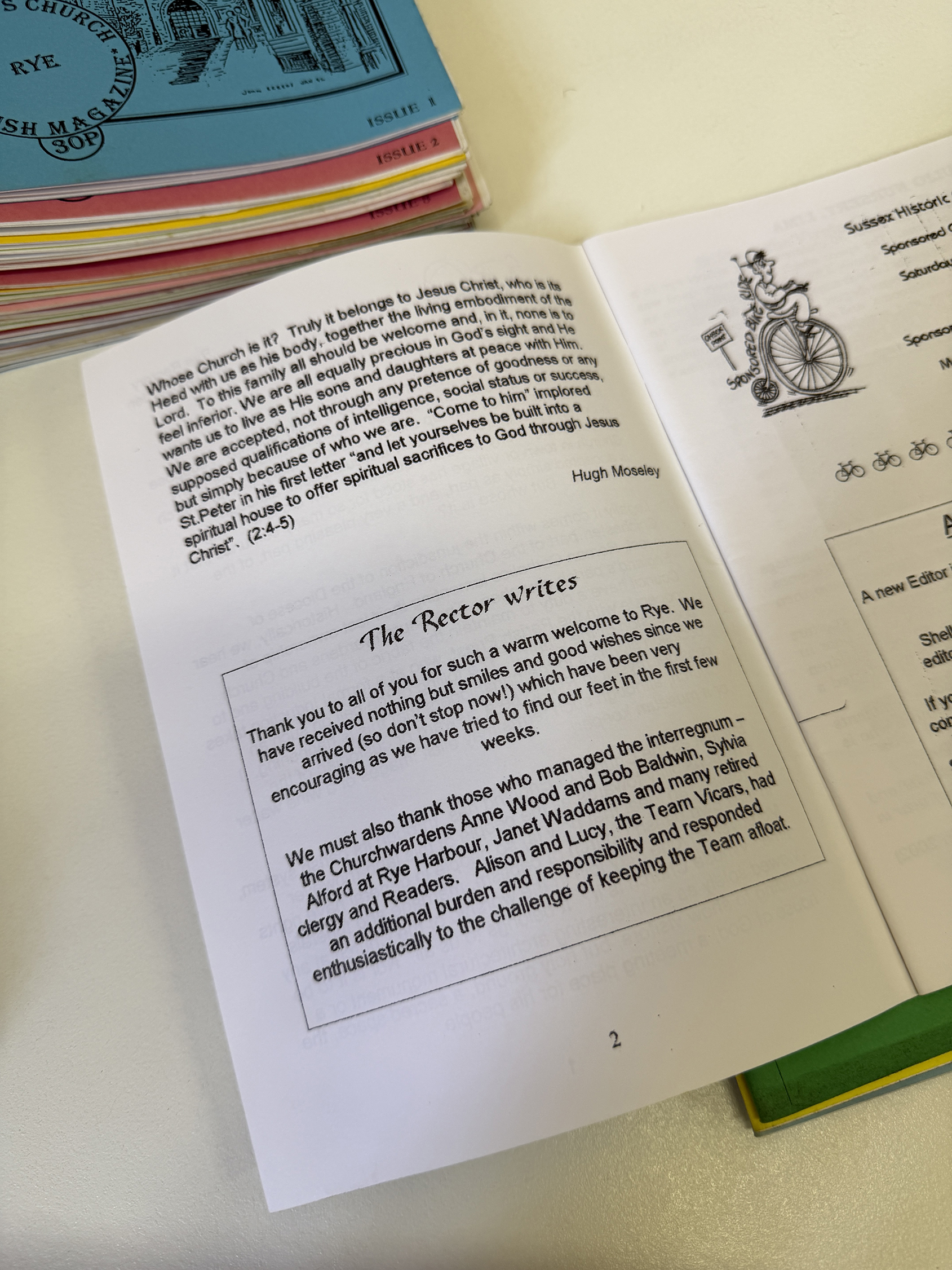 The magazine was printed on the copier in Camber Vicarage and then collated, stapled and folded on my dining room table. Later on Camber had a collating machine and even a copier that did everything from printing through to folding. Although the collating could be somewhat unreliable and needed checking.