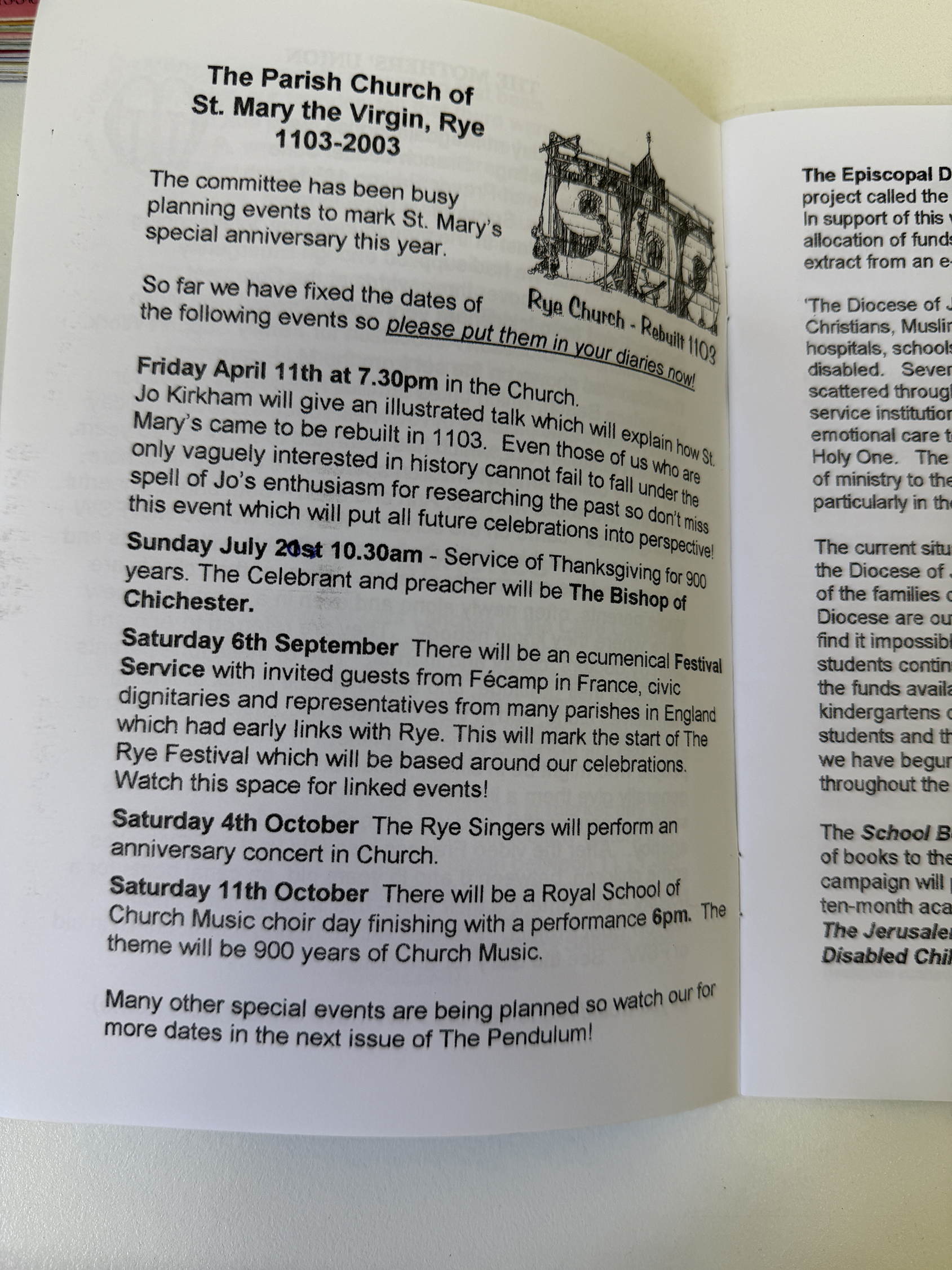 I didn’t write much but I do remember that in 2003, when we celebrated the 900th anniversary of the founding of St Mary’s, we held various events during the year and in one of the autumn issues we inserted a pull-out supplement of photos of all those events. We had fun that summer.