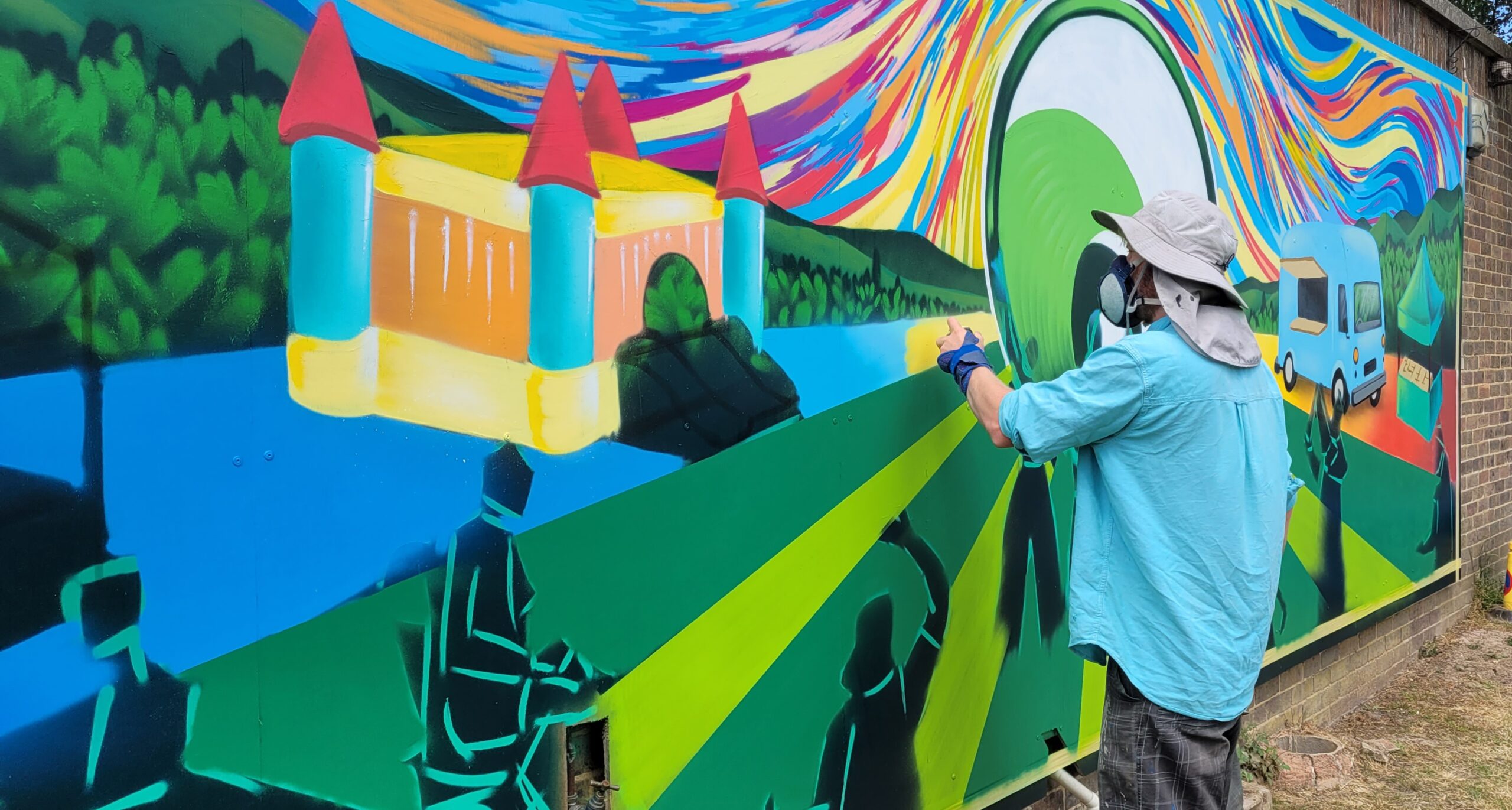 Upon completion Luke said: “I thoroughly enjoyed working on this project. It was great to create something bright, fun and engaging for the Tilling Green community. I hope the mural is a talking point for the festival, and can get not just the neighbourhood together, but can help bring the larger Rye community and tourists to Tilling Green for a weekend of fun and games and a few cold beers.”