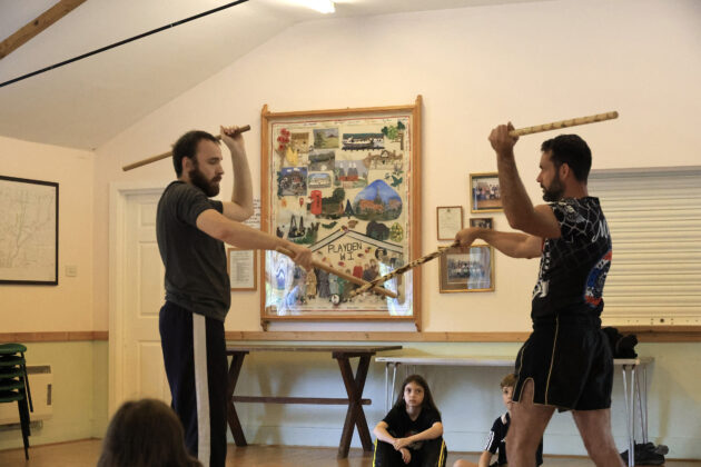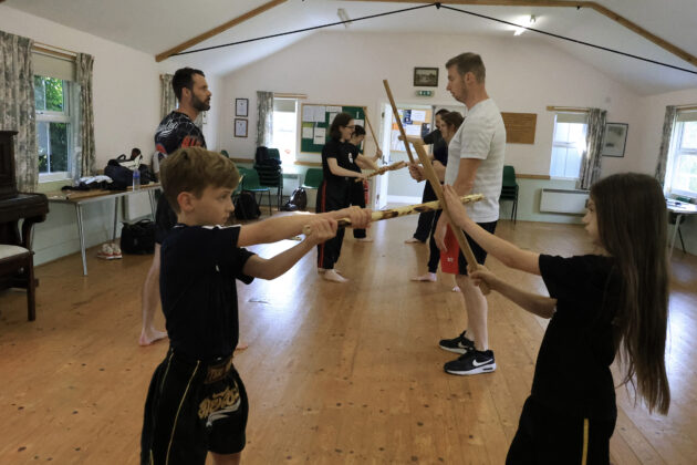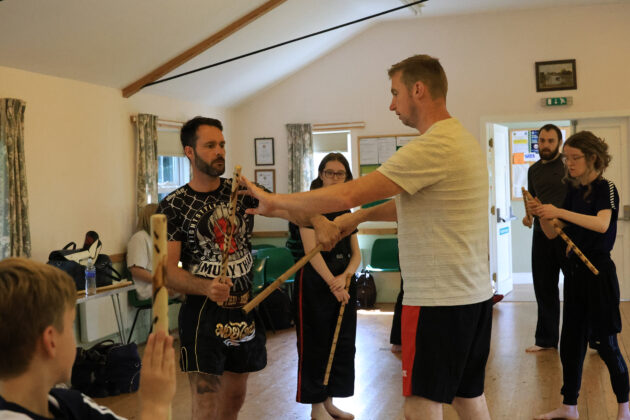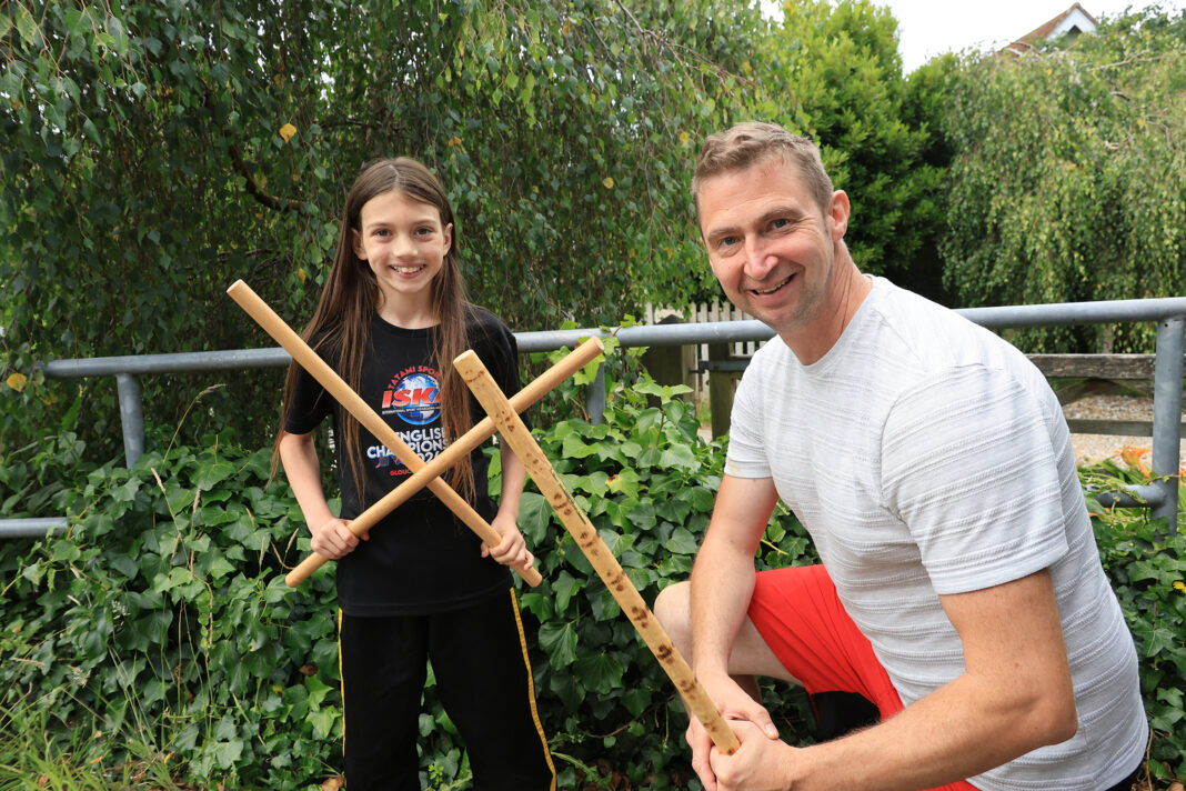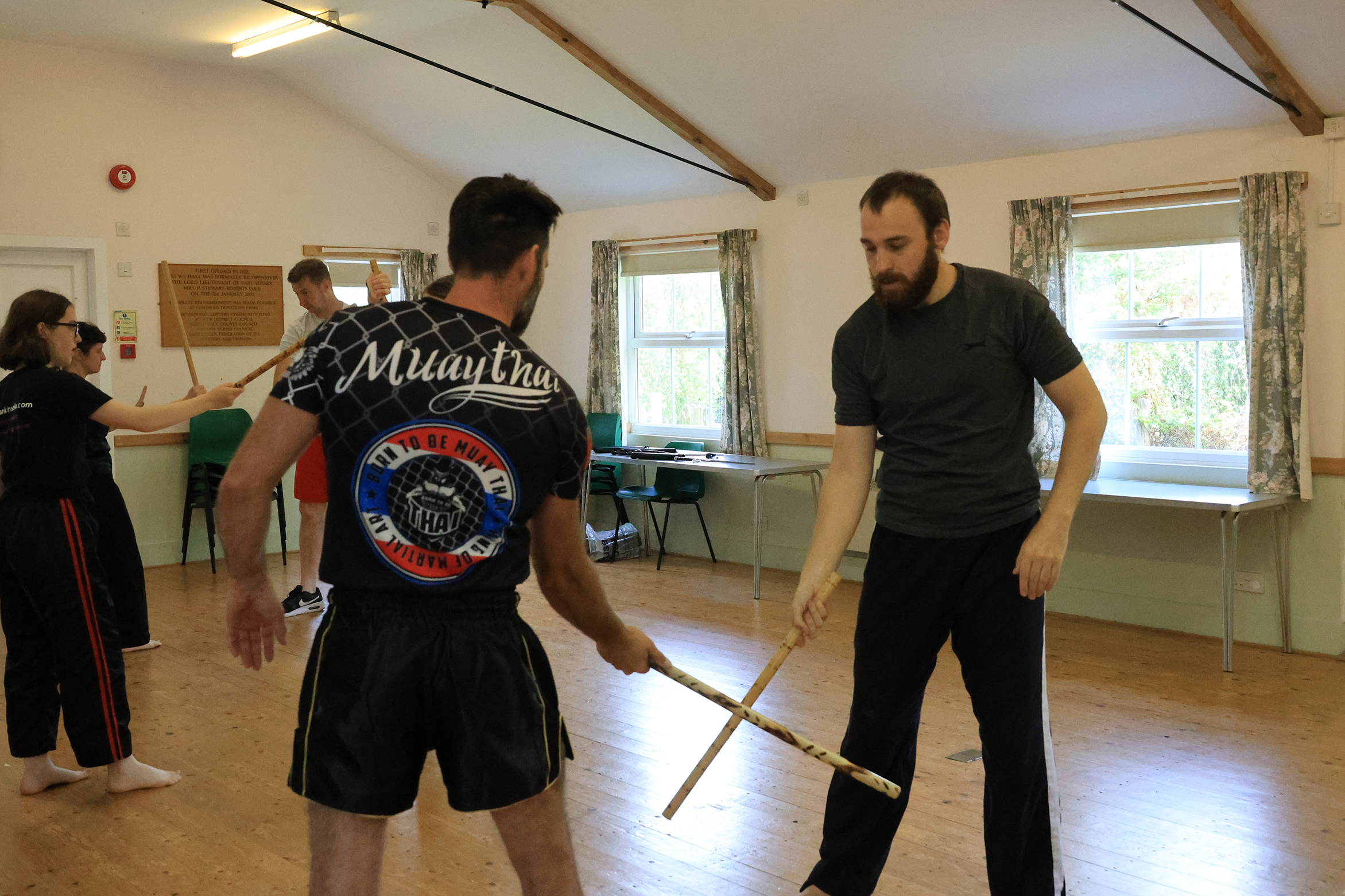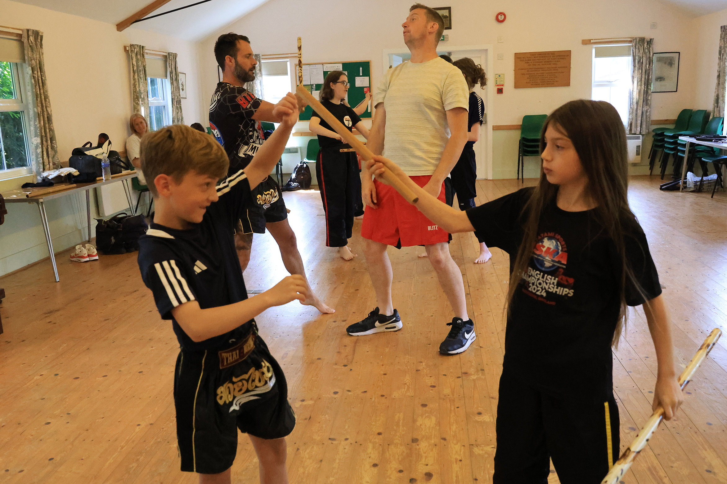 Chase Skinner has shown a great deal of potential in her training for kickboxing and kata over the last few months and is always looking for new avenues of training which will stretch her. Sean Kinsella, who is the chief instructor of Sean Kinsella Martial Arts (SKMA) and teaches Chase and Stanley, ran a masterclass in Escrima Stick training from a Filipino martial art called Arnis / Kali on Sunday July 14 at Playden WI Hall.