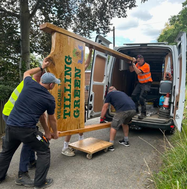 The first step forward came with a grant award from the Rye Fund via the Sussex Community Foundation. It was followed soon after with a donation of oak timber from Graham’s cousin Sean Quinn. Kevin and son Josh from Udimore Road’s Mermaid Joinery were hired to create the sign while Dustin at Care Signs offered to donate the lettering work. Kevin went to school at Tilling Green and Dustin lives with his family on the estate so this was established as a very local project.