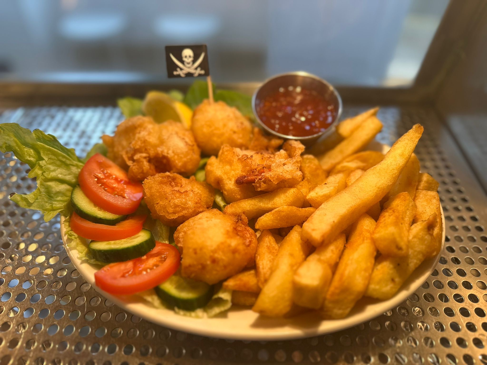 Battered scallops at Marino’s – If ever scallops or Rye Bay Scallop Week were seen as being “pretentious” then surely this way to enjoy a scallop turns that on its head! Neon has been battering his scallops and serving with sweet chilli or tartar sauce each year and his customers can’t get enough of them.