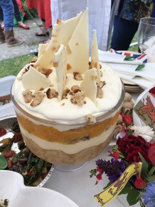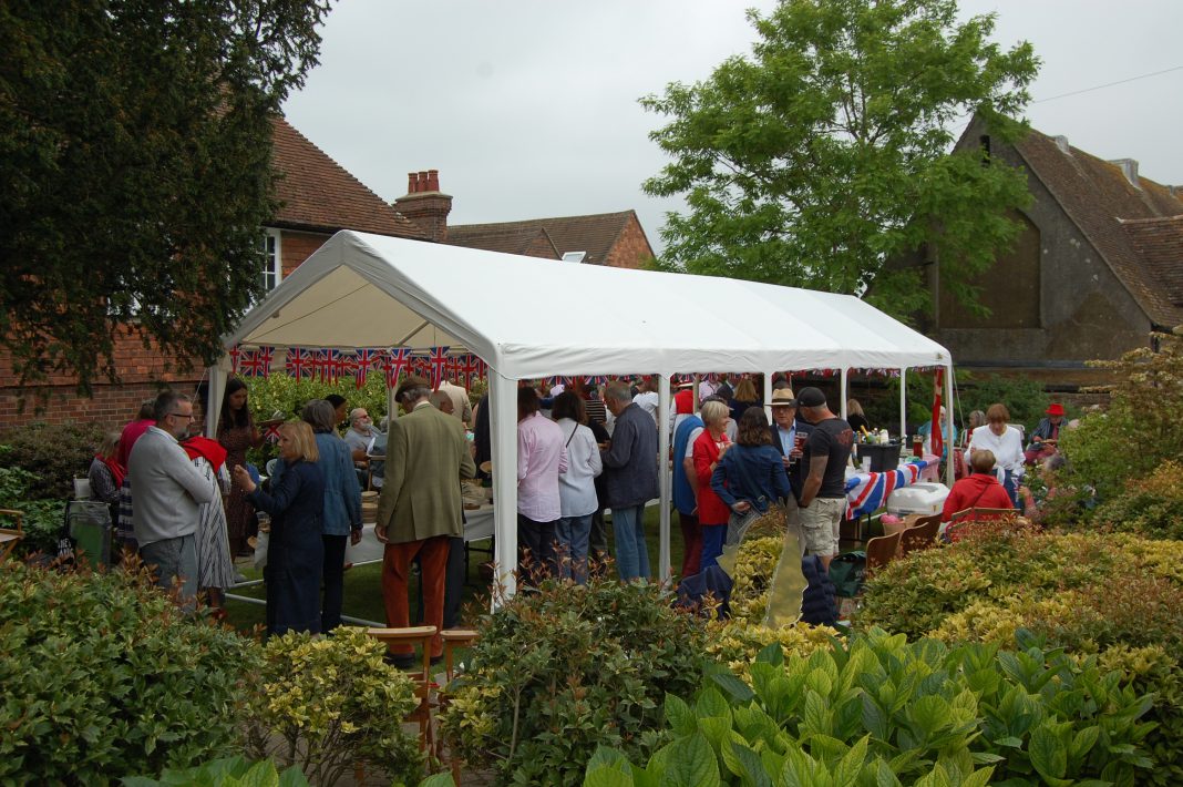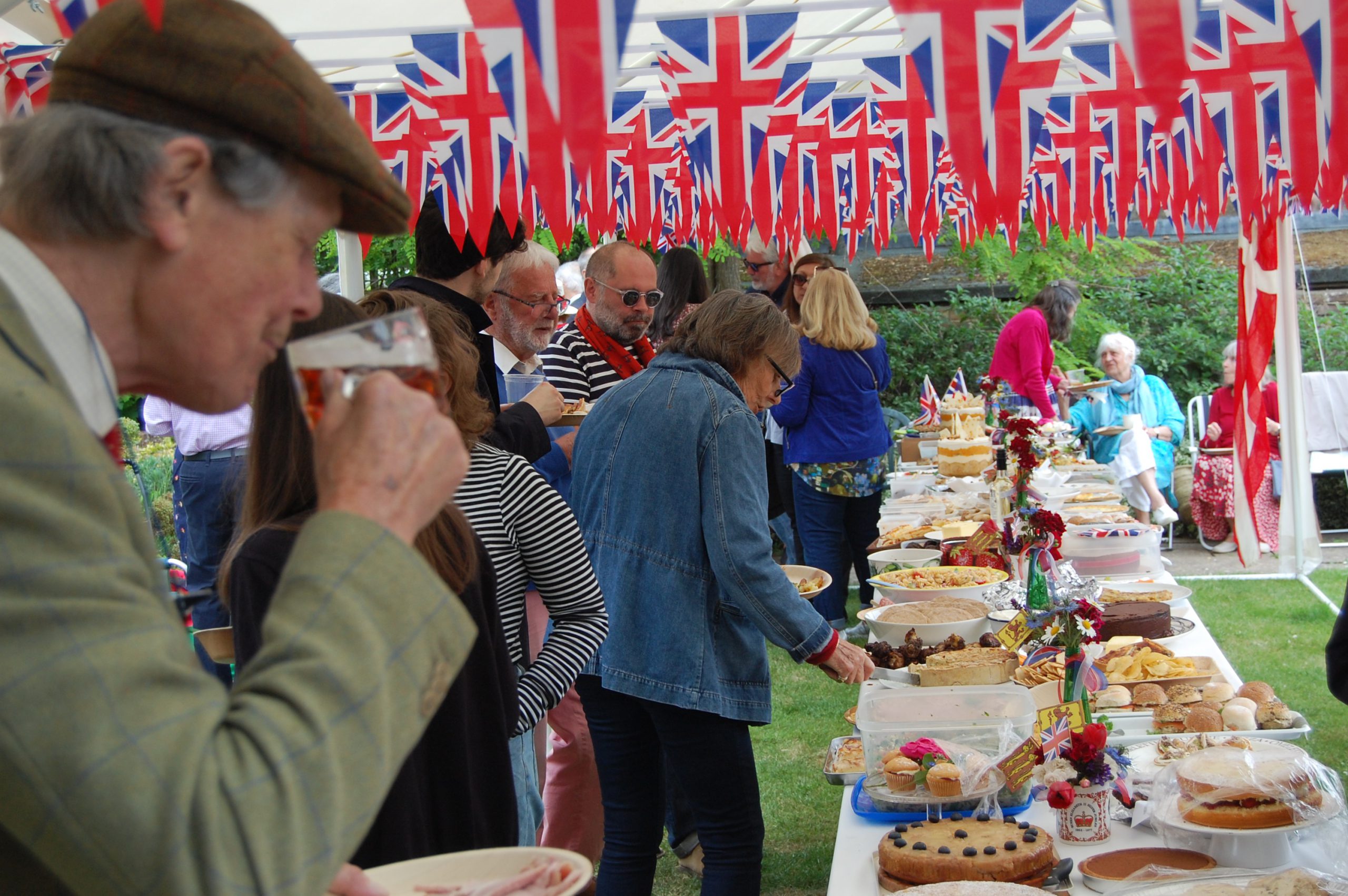 Some 50 local residents gathered last Sunday in the former Quaker graveyard at the end of Watchbell Street. Beneath the central marquee were tables on which each guest laid their offerings of food and wine. It was an abundant cornucopia enough for twice their number. To crown the feast there were two Platinum Jubilee puddings, created by Roger Moore, one of the guests.